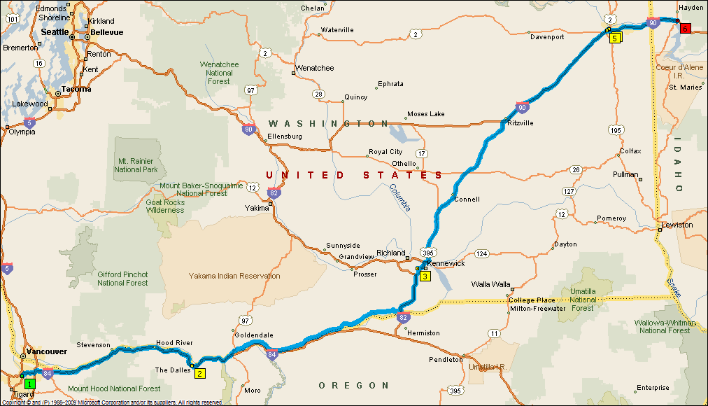 Well today was definitely an interesting day. We awoke to dismal looking skies, but at least it wasn’t raining. We had coffee and juice at the hotel before packing the car and heading east out of Portland on the south side of the Columbia River. We spent the first little while in drizzle and rain before finally finding the sun near The Dalles. I grabbed some pictures from a rest area and we continued along I-84 – by this time it was actually partly sunny.